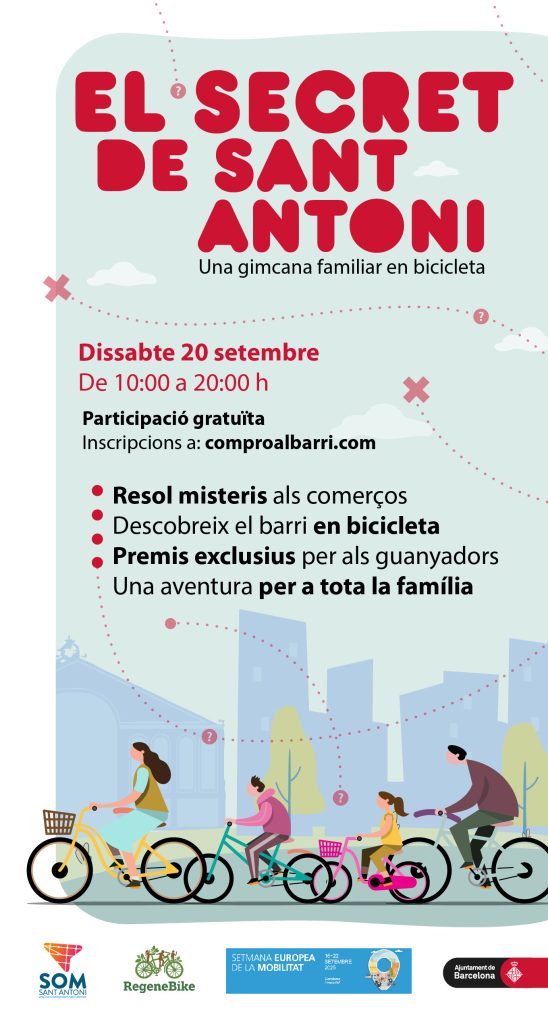 El proper dissabte 20 de setembre, SOM Sant Antoni organitza una gimcana familiar en bicicleta per descobrir el barri, resoldre misteris i conèixer l’oferta dels seus comerços. L’activitat s’emmarca dins