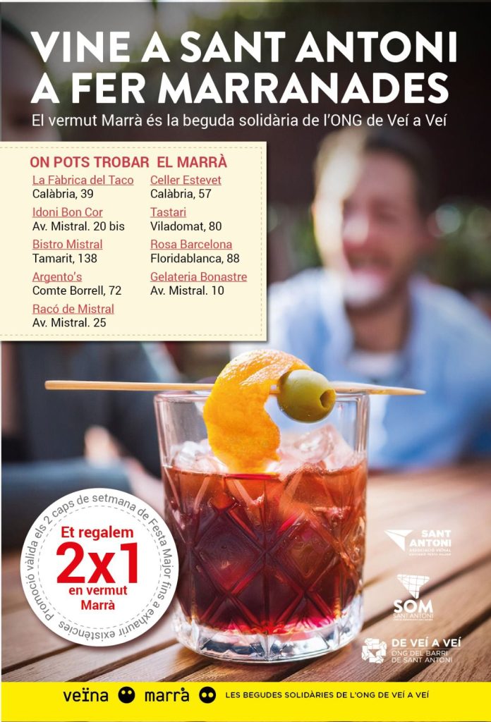 Durant la Festa Major de 2026 Sant Antoni brinda per la solidaritat amb el vermut El Marrà, la beguda solidària impulsada per l’ONG De Veí a Veí, amb la col·laboració